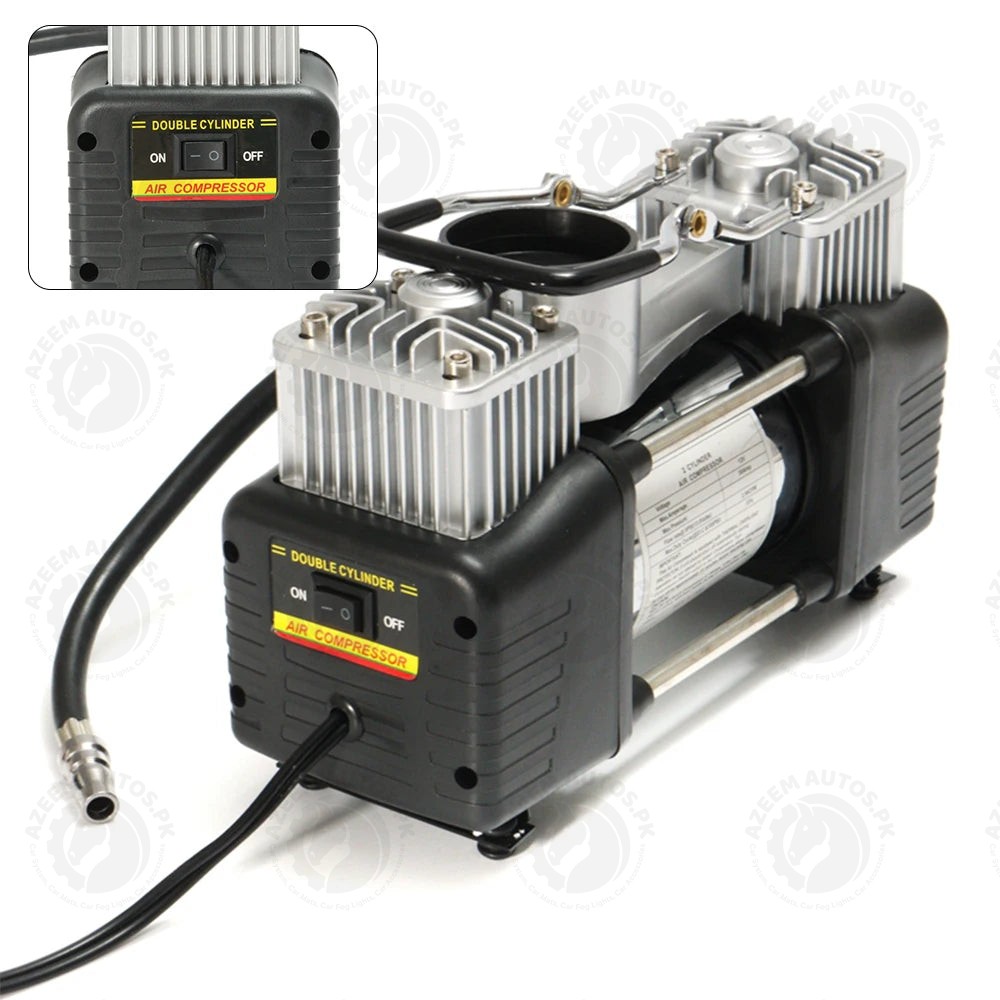 This 12V Portable Car Tire Air Compressor Dual Cylinder Pressure Pump is equipped with a powerful dual-cylinder air compressor, providing more power than the single cylinder type. It's able to inflate a standard tire from 0-30 psi in less than 5 minutes. With its impressive airflow rate, this pump is ideal for daily use.