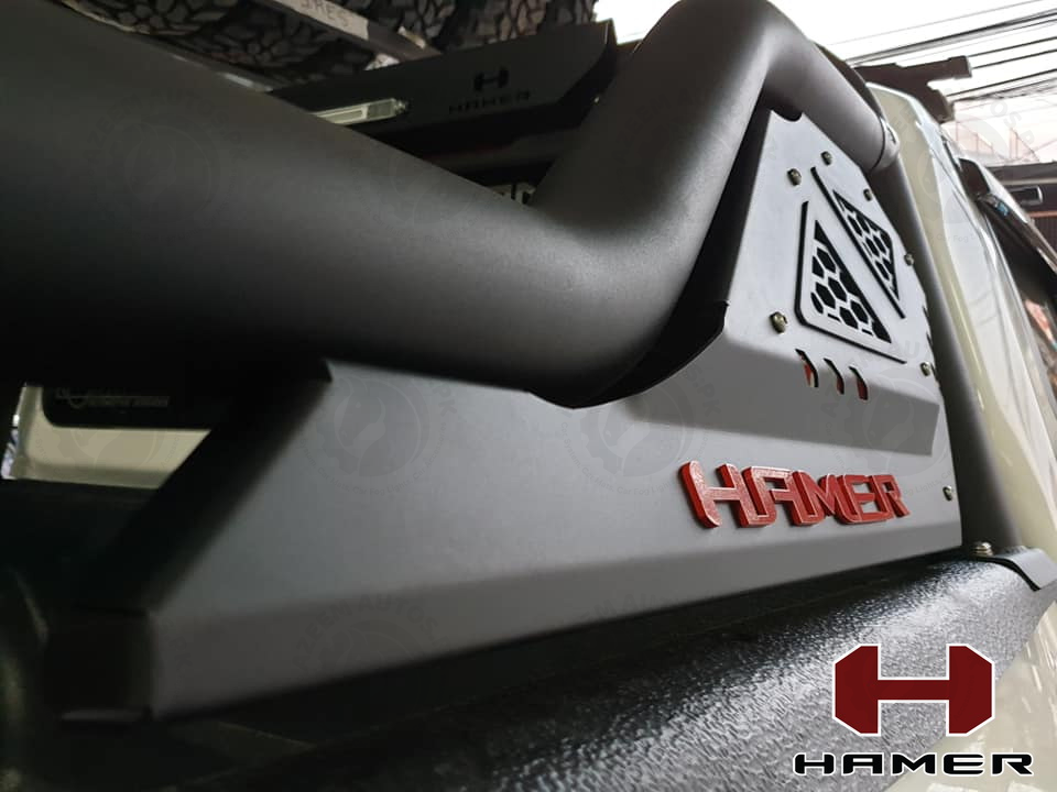 HAMER’S TITANIUM-SERIES ROLL BAR HAS BEEN DESIGNED AND DEVELOPED TO HAVE A SHAPE THAT FITS THE BODY. WITH A DESIGN LOOK THAT MAKES YOUR CAR STAND OUT EVEN MORE, STRONGER, AND MORE CONFIDENT WITH 76.2 MM STEEL TUBING USED IN THE PRODUCTION OF ROLL BAR, COMPLETE SAFETY ON EVERY JOURNEY. AND THE ROLL BAR HAS BEEN SPRAYED WITH POWDER-COATED SYSTEM PAINT, THUS MAKING THE BUMPER MORE DURABLE THAN THE GENERAL PAINT SYSTEM. THE TITANIUM-SERIES MODEL COMES WITH AN OPTIONAL 3RD LED BRAKE LIGHT