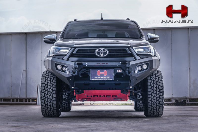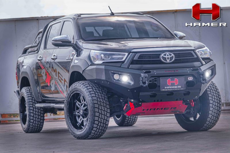 HAMER KING SERIES FRONT BAR IS SPECIFICALLY DESIGNED TO MATCH EACH VEHICLE PERFECTLY. NOT ONLY ADDING A TOUGH LOOK TO YOUR VEHICLE, BUT THE HAMER FRONT BAR ALSO PROTECTS THE FRONT PART OF YOUR VEHICLE DURING AN UNEXPECTED EVENT. STAY CONFIDENT IN EVERY JOURNEY YOU MAKE. HAMER FRONT BAR IS BUILT FROM 3 MM. THICKNESS STEEL. THE FRONT BAR COMES WITH 4 LEDs (FOG LIGHTS, DRL, POSITION LIGHTS, AND INDICATOR LIGHTS). IT IS WINCH COMPATIBLE (12000 LBS AND BELOW) AND ADOPTS ALL ORIGINAL SENSORS FROM THE VEHICLE. ENSURING YOUR SAFETY, HAMER FRONT BAR IS TESTED AIRBAG COMPLIANT.