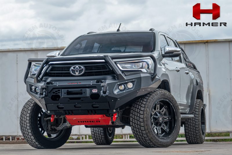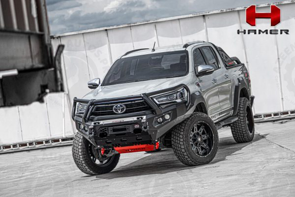 THE FRONT BUMPER OF HAMER’S KING-SERIES PLUS (PT) IS SPECIFICALLY DESIGNED TO MATCH EACH VEHICLE PERFECTLY. NOT ONLY ADDING A TOUGH LOOK TO YOUR VEHICLE, BUT THE HAMER FRONT BAR ALSO PROTECTS THE FRONT PART OF YOUR VEHICLE DURING AN UNEXPECTED EVENT. STAY CONFIDENT IN EVERY JOURNEY YOU MAKE. HAMER FRONT BAR IS BUILT FROM 3 MM. THICKNESS STEEL. THE FRONT BAR COMES WITH 4 LEDs (FOG LIGHTS, DRL, POSITION LIGHTS, AND INDICATOR LIGHTS). IT IS WINCH COMPATIBLE AND ADOPTS ALL ORIGINAL SENSORS FROM THE VEHICLE. ENSURING YOUR SAFETY, HAMER FRONT BAR IS TESTED AIRBAG COMPLIANT.