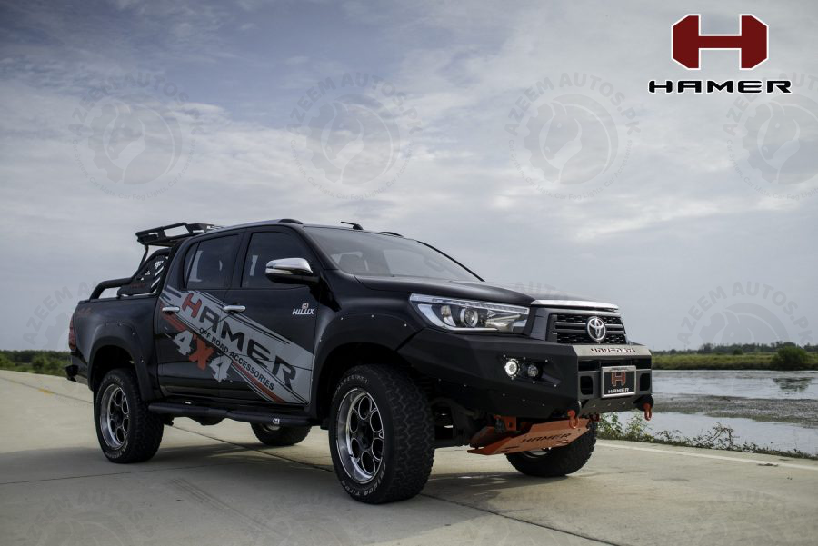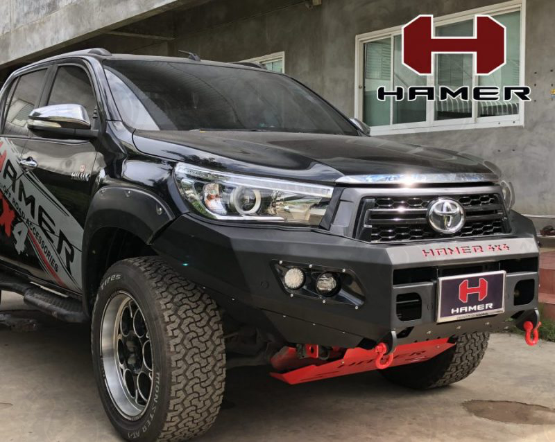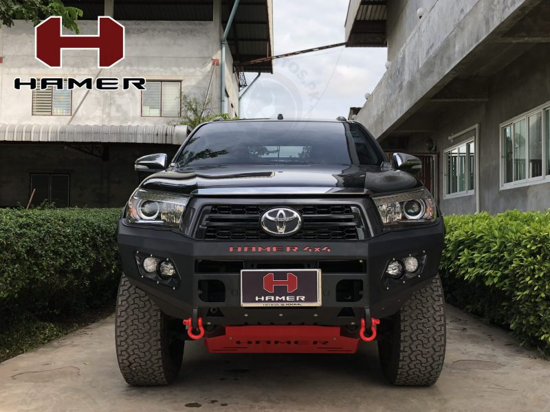 HAMER M-SERIES FRONT BAR IS SPECIFICALLY DESIGNED TO MATCH EACH VEHICLE PERFECTLY. NOT ONLY ADDING A TOUGH LOOK TO YOUR VEHICLE, BUT THE HAMER FRONT BAR ALSO PROTECTS THE FRONT PART OF YOUR VEHICLE DURING AN UNEXPECTED EVENT. STAY CONFIDENT IN EVERY JOURNEY YOU MAKE. HAMER FRONT BAR IS BUILT FROM 3 MM. THICKNESS STEEL. THE FRONT BAR COMES WITH 4 LEDs (FOG LIGHTS, DRL, POSITION LIGHTS, AND INDICATOR LIGHTS). IT IS WINCH COMPATIBLE (12000 LBS AND BELOW) AND ADOPTS ALL ORIGINAL SENSORS FROM THE VEHICLE. ENSURING YOUR SAFETY, HAMER FRONT BAR IS TESTED AIRBAG COMPLIANT.