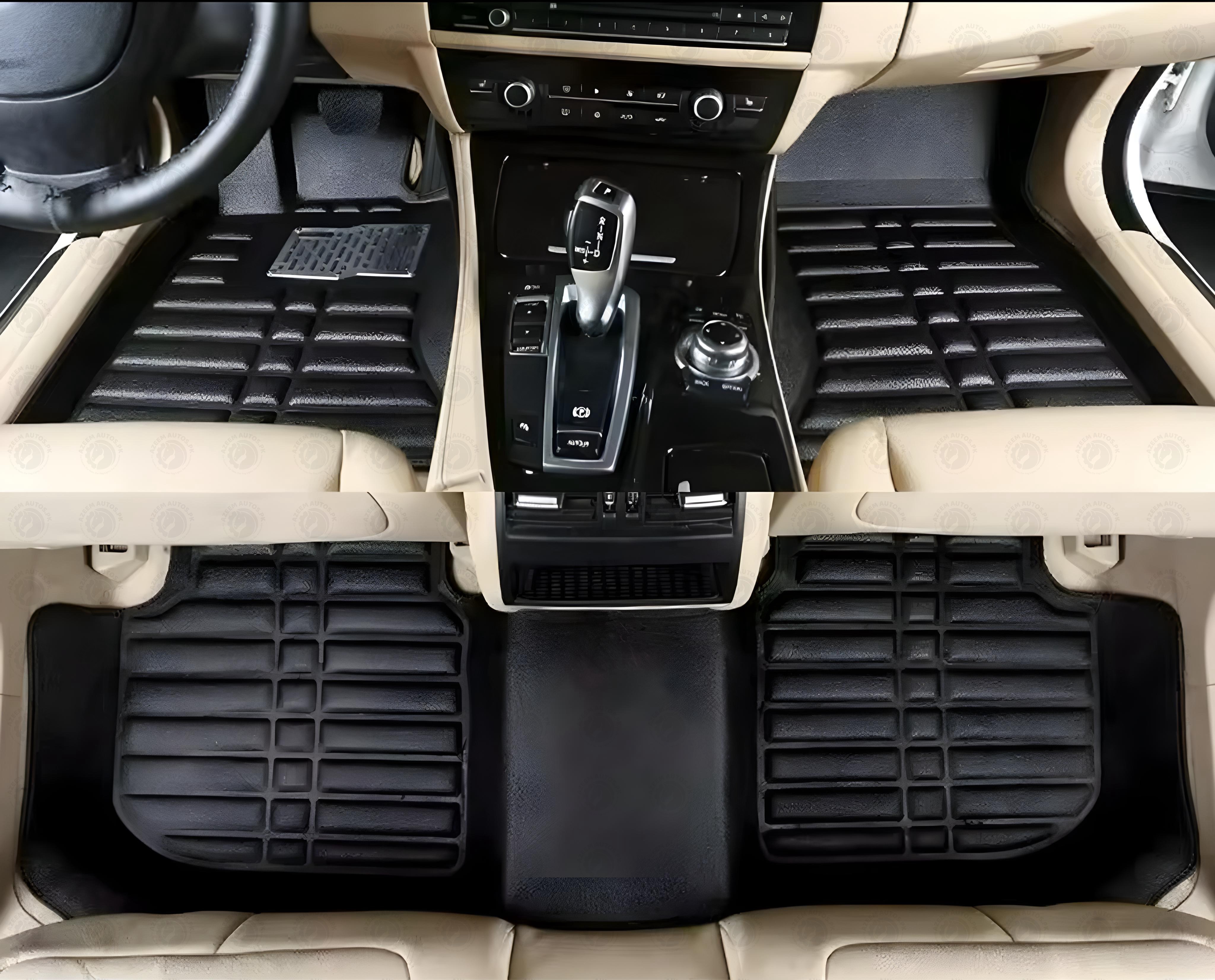 If youre looking for custom floor mats for your Toyota Corolla 5D, weve got you covered. Our black floor mats are designed specifically for the 2014-2021 model years and come in a set of three to ensure that your entire floor is protected. Not only do these mats look great in your car, but they also provide excellent protection for your cars flooring. Made with high-quality materials, these mats are durable and long-lasting. Plus, they are easy to install and clean, making them the perfect addition to any Toyota Corolla 5D. In addition to their functionality, these custom floor mats also add a touch of style to your cars interior. The sleek black - beige design complements the overall look of your car, and the custom fit ensures that they stay in place and dont shift around while youre driving.