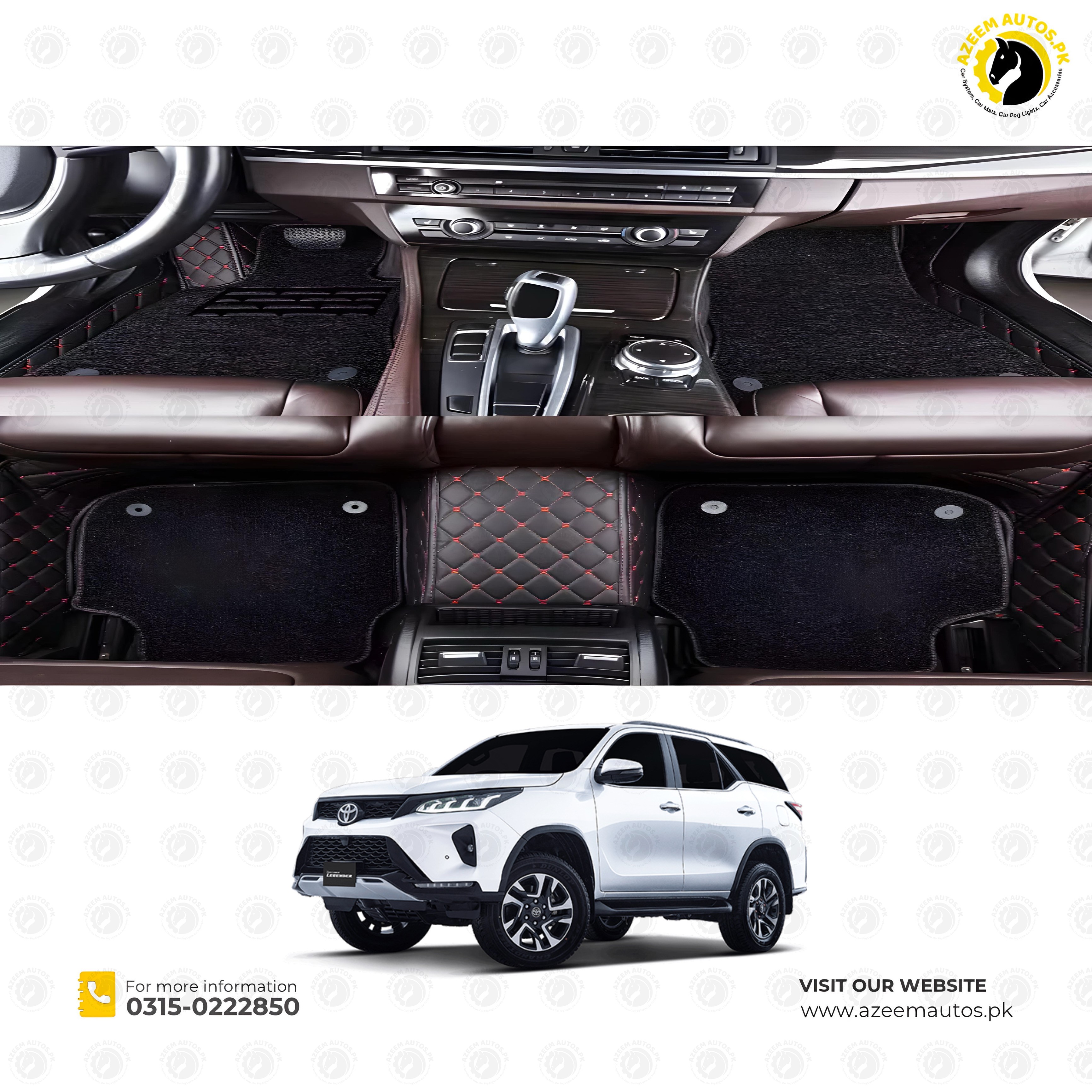 Toyota Fortuner 9D Floor Mats Mix Thread Black With Black Grass - Model 2016-2021